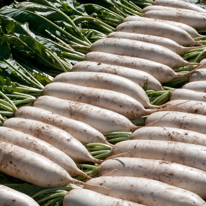 ② 圆筒形,根皮洁白、光滑,有光泽。
